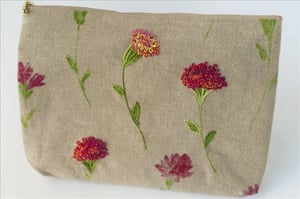 17日は銀座おとな塾で「カーネーションのポーチ」をステッチします。STOF社のカーネーション柄のすてきなリネン生地で大きめのポーチを作りました。この生地は残念ながら廃盤になってしまい、手持ちはこれだけです。もともとすてきな生地ですが、上からマルチカラーの糸でステッチすると花があざやかに浮き上がります。