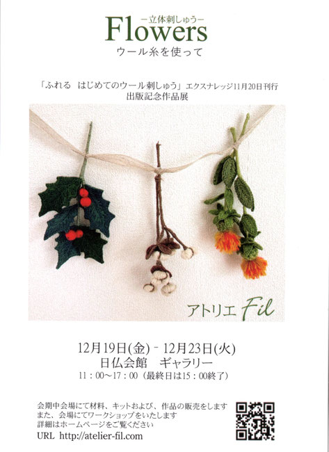 手芸に関するものを刺繍して、展示即売します。Filはかなり後れを取っていますが、(これから頑張ります!)他の先生方の作品を、是非見にいらしてください。