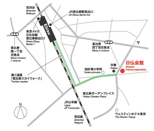 恵比寿ガーデンプレイス方向へ、動く歩道を下りて徒歩4分